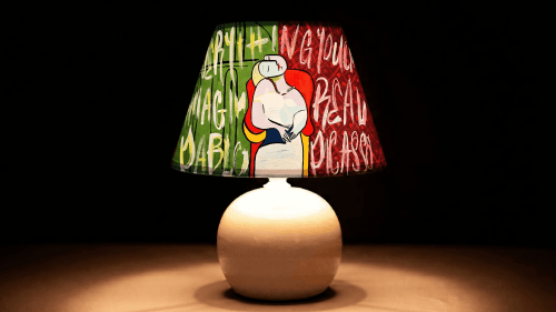 Anahtar Kelimeler: el yapımı abajur, Picasso lamba, Le Rêve abajur, graffiti desenli abajur, pop art aydınlatma, dekoratif masa lambası, modern tasarım abajur, sanatsal aydınlatma, renkli abajur şapkası, iç mekân sanat objesi, tasarım abajur, fırça darbeli el boyaması lamba, abajur, pop art abajur.