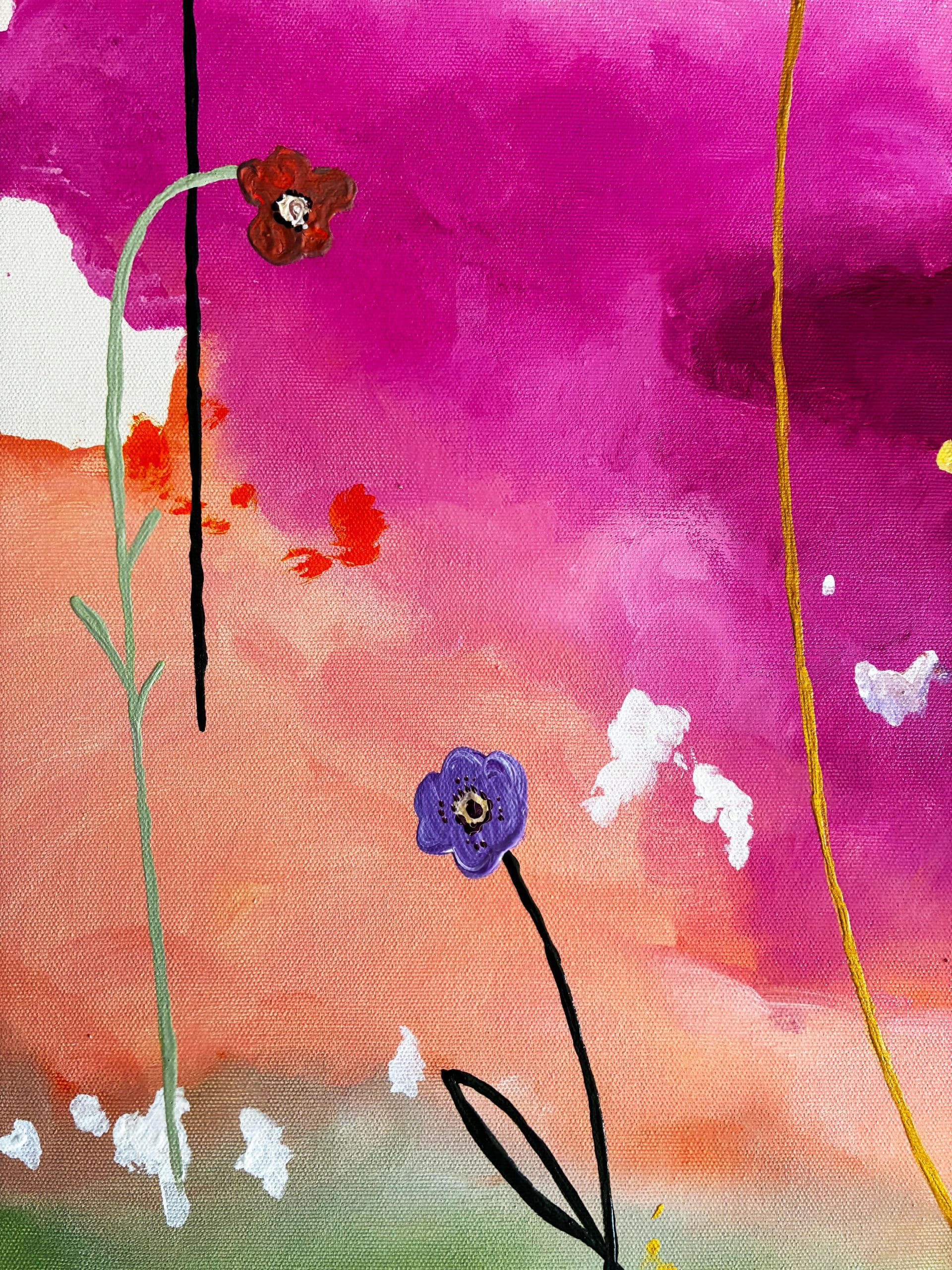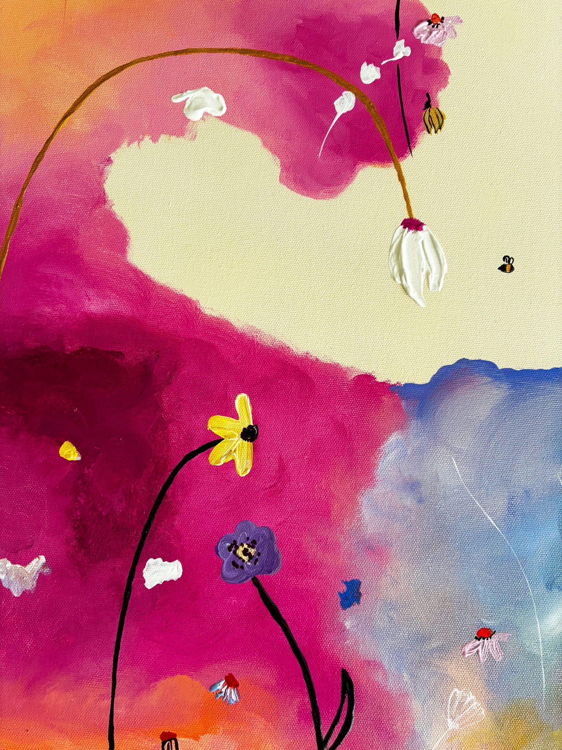 • Kalın ve katmanlı fırça darbeleriyle oluşturulmuş zengin fon dokusu.