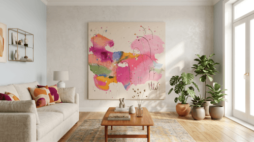 Anahtar Kelimeler: alçı tutkal dokulu tablo, rölyef sanat eseri, harçlı dokulu tablo, kare soyut resim, pembe fuşya akrilik tablo, kabartmalı duvar sanatı, el yapımı sanat, 140×140 kare tablo, sanatçı imzalı eser, modern iç mekan dekorasyonu.